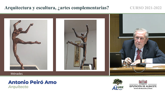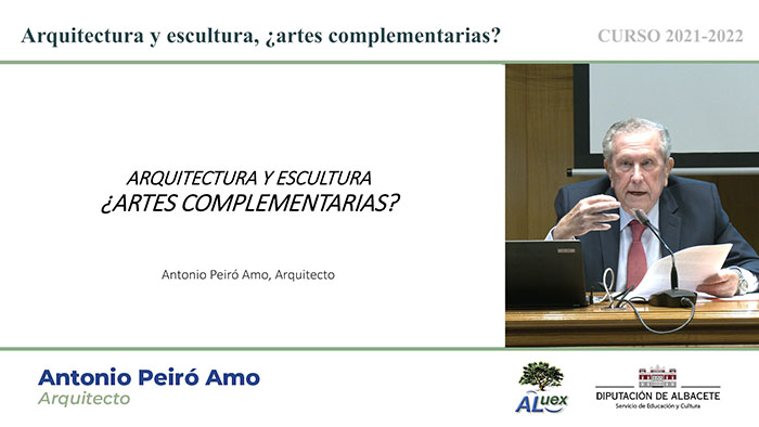 Día 2 de mayo 2022. 23ª Conferencia. ALUEX: EXPERIENCIA, CULTURA Y ESPERANZA. En su apartado:LAS ARTES, ARQUITECTURA Y ESCULTURA, ¿ARTES COMPLEMENTARIAS?. Don Antonio Peiró Amo. Arquitecto.
