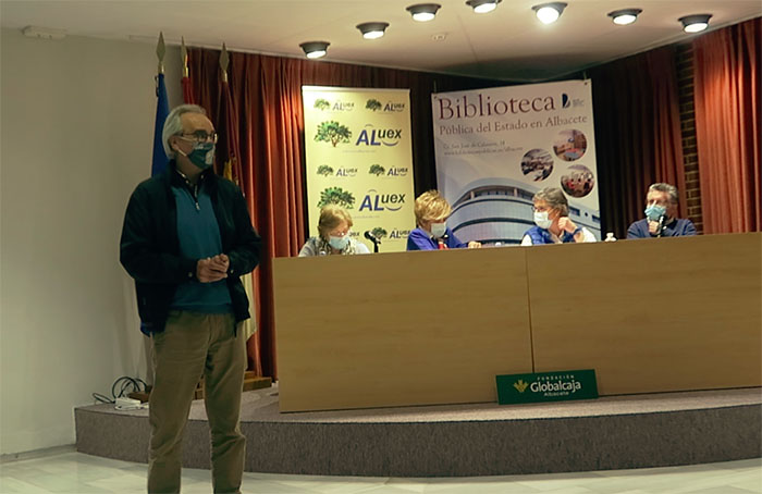 En el Salón de Actos a las seis de la tarde comenzó este acto con la intervención del director de la Biblioteca don Juan Manuel de la Cruz Múñoz. Dando la bienvenida a nuestra asociación, después de tantos meses de pandemia, ofreciéndonos de nuevo sus instalaciones y servicios.