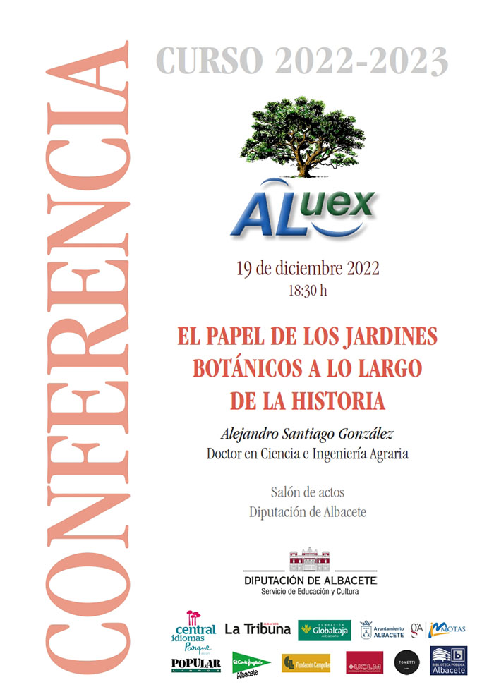 19 de diciembre 2022. Conferencia número 8: EL INTERÉS DE LA CIENCIA. EL PAPEL DE LOS JARDINES BOTÁNICOS A LO LARGO DE LA HISTORIA. Alejandro Santiago González. Doctor en Ciencia e Ingeniería Agraria. Boletín informativo: