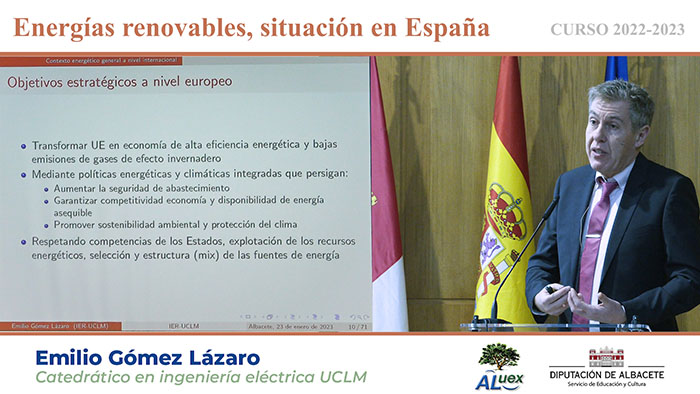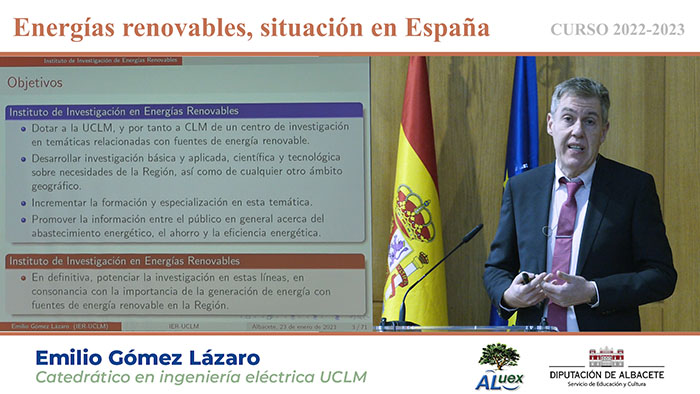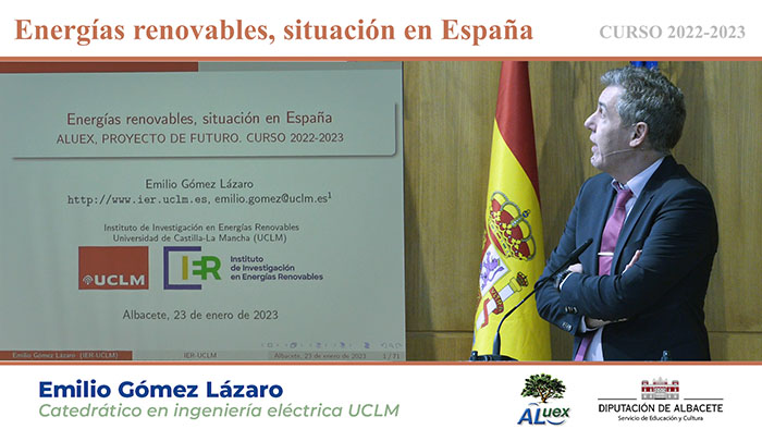 23 de enero 2023. Conferencia número 10: ENERGÍAS RENOVABLES, SITUACIÓN EN ESPAÑA. Emilio Gómez Lázaro. Catedrático en Ingeniería Eléctrica UCLM.