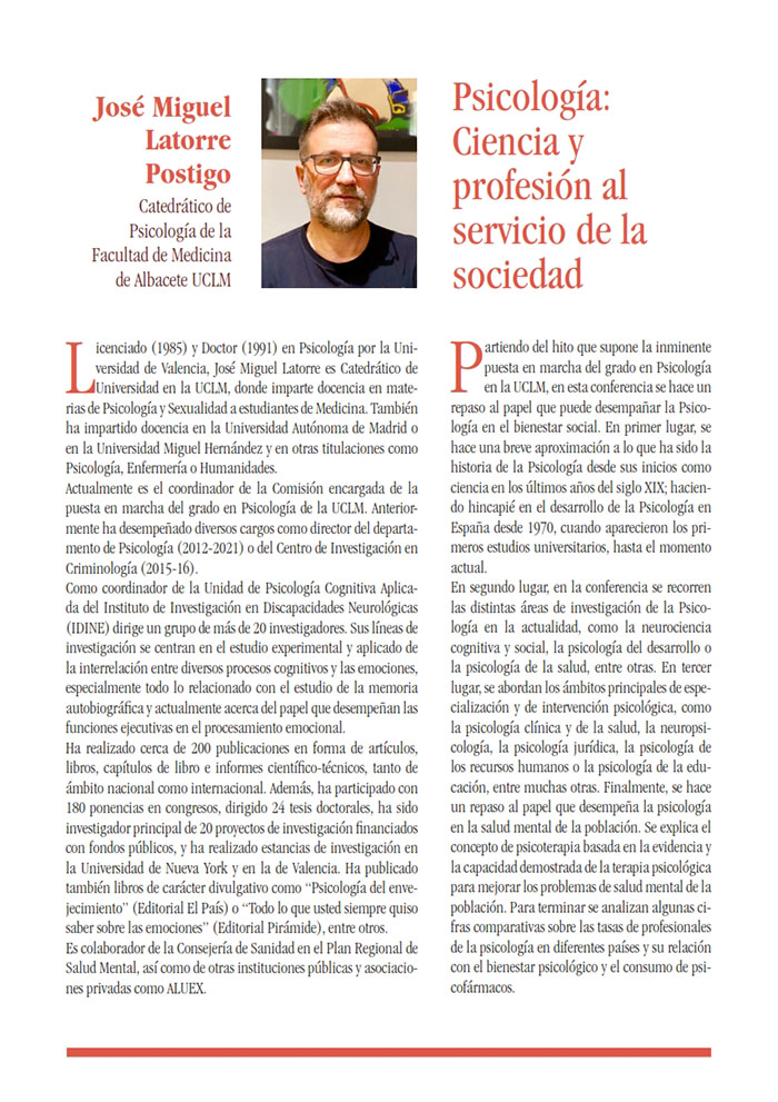 PSICOLOGÍA: CIENCIA Y PROFESIÓN AL SERVICIO DE LA SOCIEDAD. José Miguel Latorre Postigo. Catedrático de Psicología UCLM.
