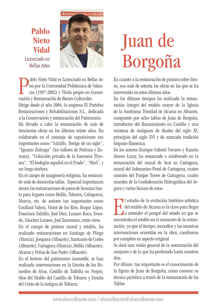 JUAN DE BORGOÑA. Pablo Nieto Vidal. Licenciado en Bellas Artes y restaurador.