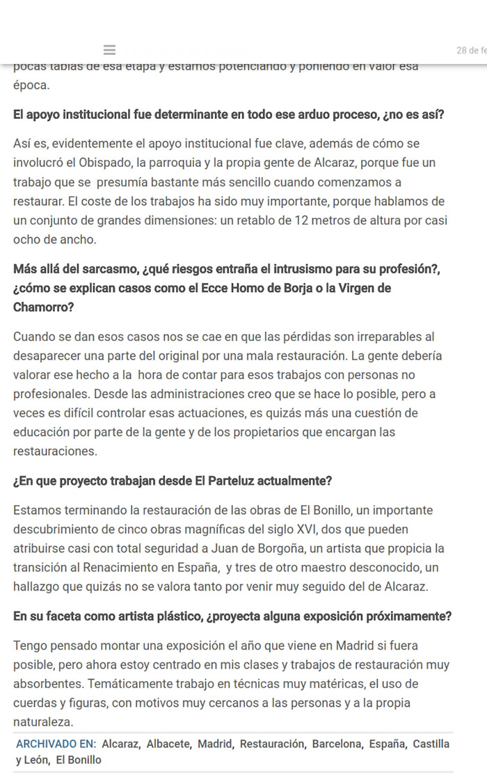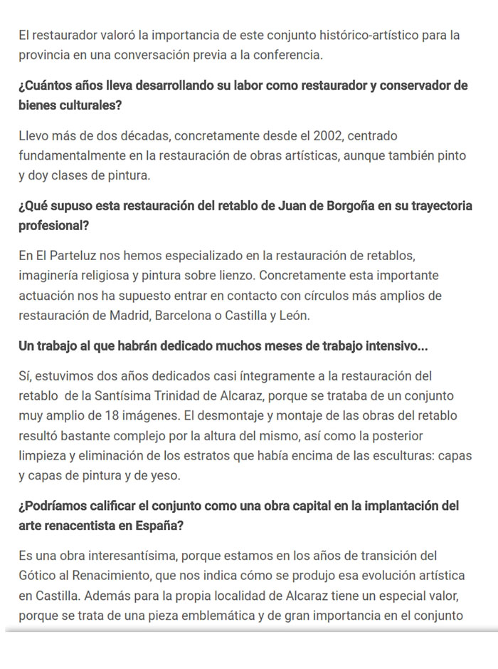 Entrevista en el periódico LA TRIBUNA DE ALBACETE;:
