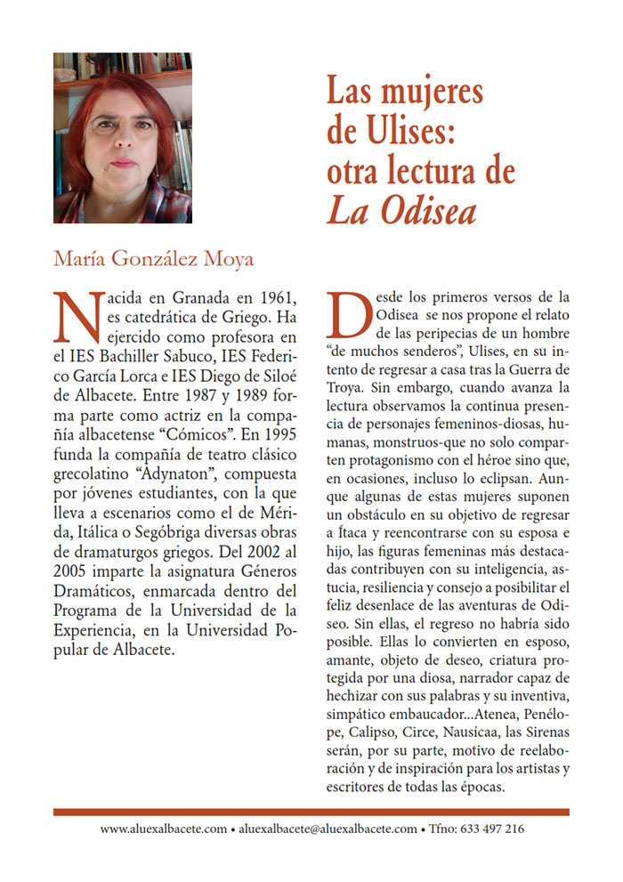 10 de abril 2023. 19ª Conferencia: LAS MUJERES DE ULISES: OTRA LECTURA DE LA ODISEA. María González Moya. Catedrática en Filología Clásica.