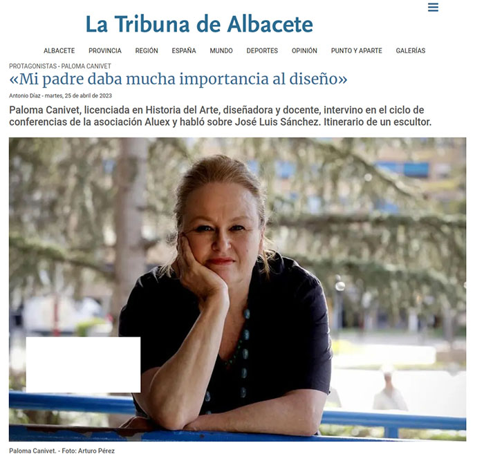 ¿Por qué en estos momentos hablar sobre su padre? Mi padre ya no está aquí, se fue hace cuatro años y me he marcado la responsabilidad, el deber y el gusto de mantener su nombre vivo. El nombre, el artista, continúa vivo, ¿no le parece? Bueno, la situación del arte en general hoy en día no es fácil, no está en uno de los mejores momentos, me parece. Una referencia en el arte contemporáneo que transitó por varias etapas. Como todos los artistas tuvo su evolución. Nació en Almansa y a los 10 años fue a Madrid. Por temas familiares, desde muy pequeño tuvo esa facilidad para el arte. Siempre fue un buen estudiante, un gran lector y empezó a asistir a las clases de Ángel Ferrant y compaginó esto con el trabajo y los estudios de abogacía, aunque siempre quiso estudiar arquitectura. Me decía que no había buscado las cosas, que en la vida se van cruzando. Para la época, años 50, viajó mucho al extranjero, fue al estudio de mis abuelos, ceramistas, donde conoció a mi madre, y donde asistieron muchos de los miembros de El Paso, por cierto. Estuvo en París becado, viajó a Roma, Milán y después ha tenido la suerte de cruzarse con arquitectos punteros, como Fisac o Carvajal, y otros muchos. Me comentó que había trabajado con más de 50 arquitectos. Mi padre se centró en hacer escultura aplicada a la arquitectura que, por cierto es algo que se ha hecho a lo largo de la historia del arte, aunque hoy en día ya no es así. ¿Qué nos puede destacar de su obra? Él empezó con figuración, muy influenciada por la arqueología, por lo ibérico, pero también por todo lo que se encontró con sus viajes a Italia. Después, poco a poco, se fue decantando hacia la abstracción. Son cosas que no llegué a hablar con él, pero creo que su escultura tiene mucho que ver con la grafía, con movimientos gestuales y claro, tiene que ver con lo constructivo, con la arquitectura. La idea de que la escultura suele ser más de trabajo físico no la cumplía mi padre. Su idea era más de concepto mental e intelectual. Hacía las maquetas y otros ejecutaban las pieza, con su supervisión. Realizó bastantes puertas, como la de la Diputación en Albacete y utilizaba materiales diversos, como madera, mármol, bronce, aluminio, también en hormigón que trataba. Hizo bastante arte religioso y aplicaba pan de oro al hormigón. También me habló en ocasiones de lo poco apreciada que estaba la escultura con respecto a la pintura. Mi padre daba mucha importancia al diseño también y trabajaba normalmente con maquetas de sus esculturas, que pasaba a otras escalas. Le gustaban mucho las puertas también. Sí, con el sentido filosófico que tienen; el juego de las puertas, el umbral. Igualmente, le gustaba la piedra, tal como sale, en bruto de la cantera, era un tema muy recurrente en él. ¿Qué pasa con su obra ahora en Albacete? Pues quiero ver qué va a pasar con ella, porque hay que repararla. Era una obra en acero corten y no sé en qué momento, alguien decidió darle una pintura plateada y me encontré en la rotonda este verano que estaba a punto que caerse. Un amigo químico me dijo que la mezcla de la pintura metálica con el corten debió hacer una reacción química y después se recolocó. Antes tenía una base sólida, muy amplia en hormigón y en los últimos tiempos una pequeña estructura que no soportaba el peso. En todo caso es para mí un misterio. Están por todo el mundo sus obras. Claro, en Madrid, por supuesto en Albacete, incluso en Finlandia hay piezas, como en París o en la Quinta Avenida de Nueva York, en la Oficina de Turismo de España, pero en el último viaje que hice, no la encontré. Lo que ocurre con la escultura es que cuando un edificio cambia de propiedad, se quitan del lugar original y después es complicado seguirles la pista. Es complicado. | ||||