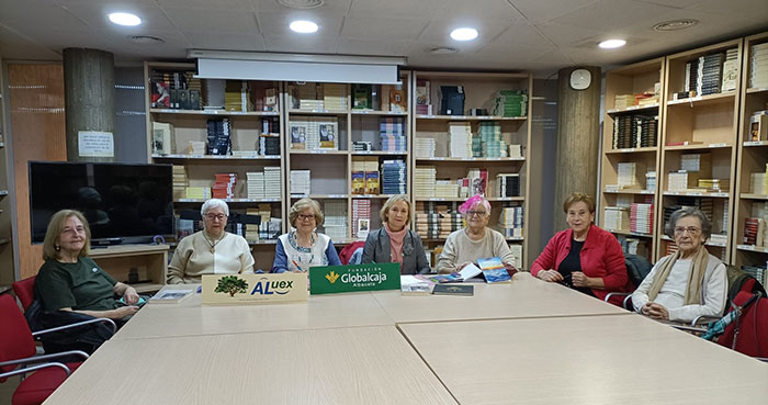 Visitamos hoy en su lugar de trabajo al club de lectura mas antiguo de nuestra asociación. Como actividad creemos que es la primera que organizó ALUEX.