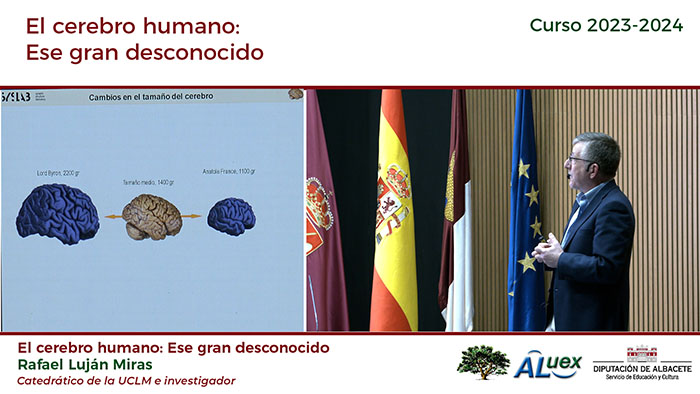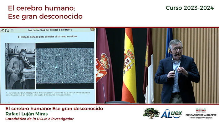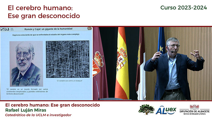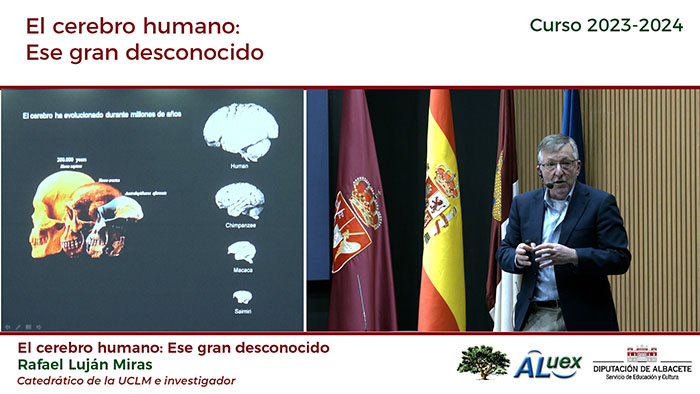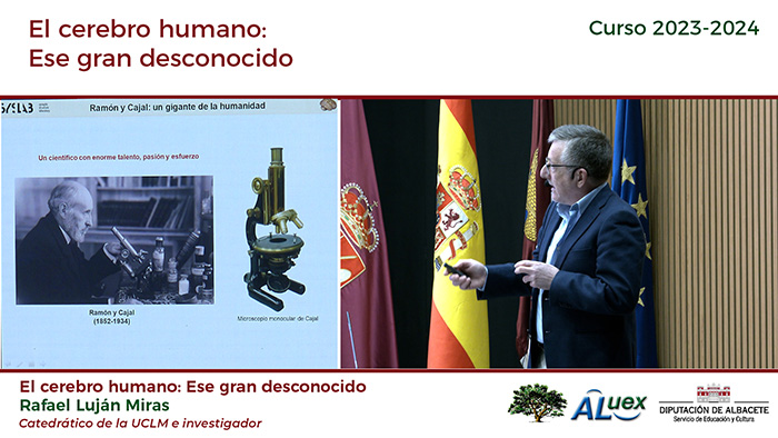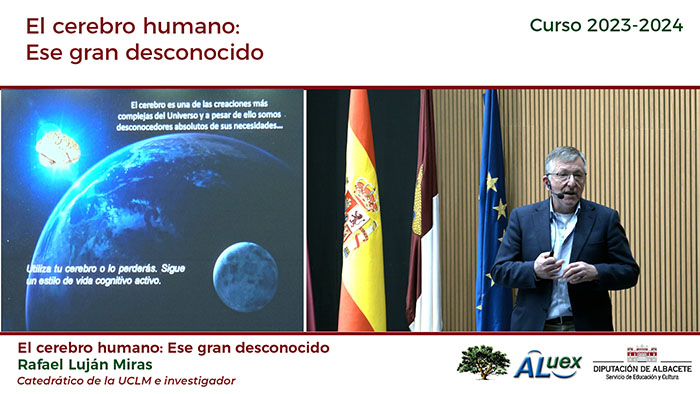 CIENCIA E INVESTIGACIÓN El cerebro humano: Ese gran desconocido. Ponente: Rafael Luján Miras. Catedrático de la UCLM e Investigador. Fotogramas de la conferencia: