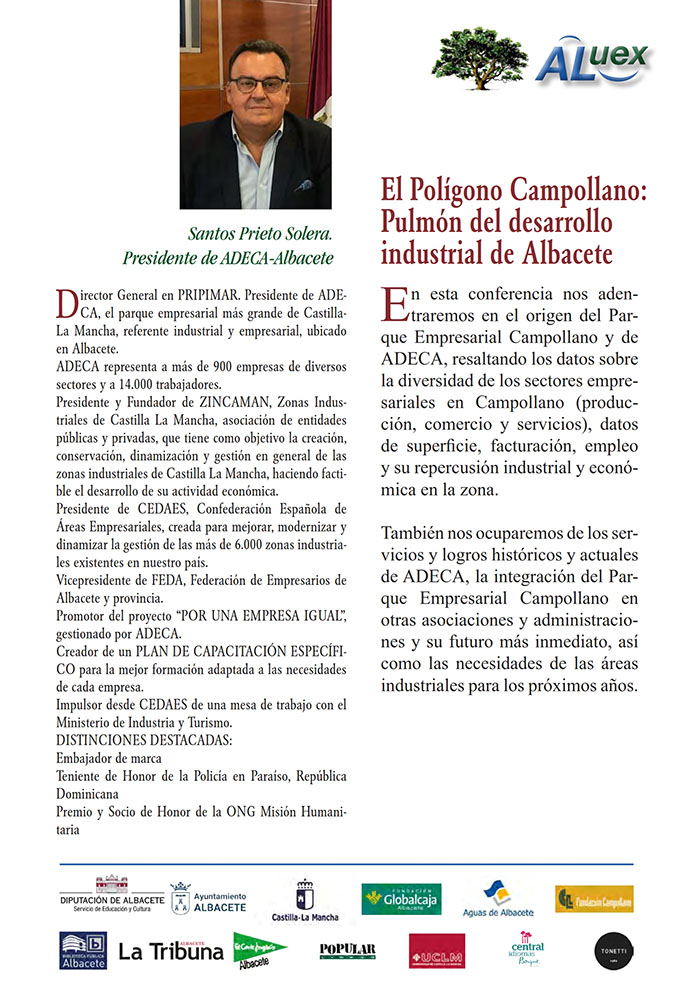 ECONOMÍA Y DESARROLLO: El Polígono Campollano: pulmón del desarrollo industrial de Albacete. Ponente: Santos Prieto Solera. Presidente de ADECA-Albacete y Empresario