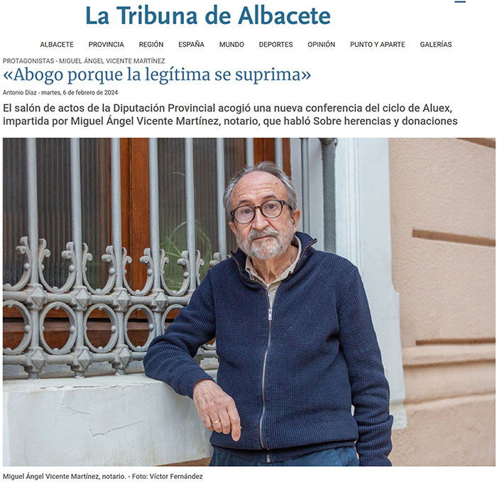 Todos, en algún momento, pasamos por una Notaría. Sí, sobre todo, si hay algo que heredar, lógicamente. ¿Es frecuente que se rechace una herencia o todo el mundo suele aceptarla? Bueno, lo primero que hay que hacer es un inventario de los bienes y derechos, también de las obligaciones y deudas, con el objeto de determinar si conviene aceptar o no esa herencia. Últimamente se están dando muchos casos de renuncias de herencias por imposibilidad de hacer frente a los impuestos y en otros, porque la masa hereditaria delata más cargas que bienes. Eso es importante. ¿Esos bienes, van al Estado? Depende, al renunciar los herederos en primer lugar, pasarían a los de segundo grado, nietos, bisnietos y si se agota esa línea iría a los ascendientes o al cónyuge, incluso si todos renuncian, pueden llegar a los primos hermanos. Una vez se agote esa vía del cuarto grado, es cuando el Estado entraría a heredar. ¿Es frecuente hacer donaciones en vida, para evitar impuestos, o es mejor herencia que donación? Hay que ver el caso concreto. En principio, hay que tener en cuenta, tratándose de bienes inmuebles, que hay una pequeña zarpa de la hacienda pública, porque cuando se dona en vida, puede originarse un incremento patrimonial en renta del que transmite, y eso es muy importante, porque el incremento patrimonial se calcula entre el coste de adquisición de ese bien por parte del que lo va a transmitir y el valor que tiene en el momento de la transmisión. La diferencia, en muchos casos puede ser importante y hay que estudiarlo con un asesor fiscal. ¿Debemos hacer testamento ante notario? Yo siempre recomiendo hacer testamento, porque se expresa la voluntad de la persona que deja prevista la sucesión de sus bienes para el día que haya fallecido. Fundamentalmente lo recomiendo cuando son cónyuges, porque se pueden dejar el usufructo universal recíproco. Conviene hacerlo porque a falta de él hay que hacer una declaración de herederos abintestanto que, aparte de ser más burocrática y con algo más de gasto, implica también más requisitos. ¿Hay diferencias entre cónyuges y parejas de hecho? En algunas comunidades se está equiparando ya con el matrimonio ordinario. En Castilla-La Mancha, en principio, a los efectos de heredar, no hemos llegado a ese punto. Hay que tener en cuenta esa circunstancia. ¿Es posible desheredar a los hijos? La ley marca ciertas personas, por parentesco, que tienen derecho a heredar de una persona concreta, normalmente línea descendiente, hijos, nietos, ascendientes y, a falta de unos y otros, cónyuge. Fuera de esa relación de parentesco, es totalmente libre el testador para distribuir sus bienes como crea conveniente. El problema de estas personas, legitimarios, que por ley tienen que heredar, puede dar lugar a problemas. Se ha visto mucho esta situación a raíz de la pandemia, porque testadores han venido al despacho quejándose que durante la misma no le han hecho caso, incluso no han ido a un hospital a preguntar por él. Esa circunstancia no la contempla la ley como causa para desheredar a quien tiene derecho. Por eso, es importante, quizá, una reforma del Código Civil en este sentido, y yo abogo porque la legítima se suprima y que la persona que tiene un patrimonio lo distribuya como crea conveniente, absolutamente libre, aunque lo normal es que un padre quiera dejarle a un hijo, o que lo distribuya de una manera diferente. Sin embargo, el sistema de legítima, sobre todo en la línea descendente, te ata de pies y manos. Sí es cierto que el Tribunal Supremo ha emitido ya algunas sentencias en el sentido de que el abandono y menosprecio a los ascendientes se considera causa de maltrato psicológico, para desheredación. Pero bueno, es importante, a mi juicio, que el testador tenga plena libertad. De hecho, la democracia que se denomina como más avanzada, Estados Unidos, prácticamente en todos los estados hay absoluta libertad de disposición mortis causa, de tal manera que no es extraño que alguien ha dejado su millonaria herencia a su perro, su gato o a quien sea.