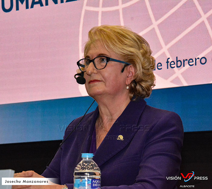 La encargada de la exposición fue Celia Monteagudo Molina, (natural de Madrigueras) Delegada Manos Unidas en Albacete. Doctora en Filología Inglesa ( Universidad de Alicante, 1996) y Doctora en Sagradas Escrituras por la Facultad de Teología de Vidyajyoti en Delhi ( India ). Profesora de inglés e Inspectora de Educación marcan su trayectoria profesional sin dejar de mencionar sus 14 libros solidarios como autora.