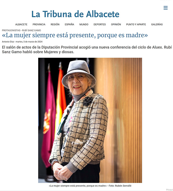 4 de marzo 2024. EL PAPEL DE LA MUJER EN LA SOCIEDAD ¿Eligió el título de la conferencia por las fechas, en torno al Día de la Mujer? No, en principio la conferencia era sobre la belleza, pero me decante por ese otro título, Mujeres y diosas, un tema muy bonito. ¿Cómo surgió ese concepto del que habló? Yo creo que en principio se fijó en la mujer como madre, que es fundamental. De ahí, el concepto de diosas surgió, bueno, como siempre se ha dicho y creo que es cierto, el concepto de diosa, como el concepto de dios, surge para explicar fenómenos de la naturaleza, comportamientos; para explicar por qué se nace y se muere. Son temas como muy eternos. ¿Cuándo tenemos las primeras noticias de esas diosas? Cuando hablamos de diosas, muchas referencias de las que tenemos, quizá están en el Paleolítico, pero creo que el concepto de dios como ser supremo está ligado al Próximo Oriente y el tema es que tengas o no textos escritos y tienes muy pocos, muy pocas referencias. Hice un recorrido por las imágenes y cómo se crea el mundo de las diosas a partir de la diosa madre, de la diosa que amamanta y propicia la vida. ¿Cómo eran esas figuras? Tenemos, por una parte, figuras donde el carácter sexual está muy representado y exagerado, caderas y pechos, al principio. Poco a poco, esa imagen se va transformando y aparece algo muy importante, como son las nutricias, las que amamantan es, por ejemplo la diosa Cibeles, de los pechos sale un líquido que vivifica, es la diosa de Libisosa, que tenemos aquí cerca. Luego, las imágenes se van transformando, en el mundo clásico porque ya a los dioses se les da nombre y funciones concretas y luego, a lo largo de la Edad Media, Renacimiento, ya surgen las recomendaciones de los pensadores sobre cómo deben ser las imágenes y qué es lo que deben representar. Ahí está, por ejemplo, San Agustín, el Concilio de Trento. ¿Conceptos filosóficos? Bueno, la filosofía griega, con Platón y Aristóteles y, luego, a partir del siglo XVI, con todos los neoplatónicos, sus concepto de belleza de armonía y que lo bello tiene que ser armónico. En el fondo, son conceptos en torno a la ordenación de la naturaleza, de la ordenación del mundo y de la vida también. Por eso, los dioses son los que permiten la vida y los que ordenan la vida para que se pueda desarrollar. ¿Se apartó a la mujer? No, la mujer siempre está presente, porque es madre, por lo tanto es señora de la naturaleza, luego, el hombre está presente, a la vez, porque es el que domina la naturaleza, es Júpiter, que lanza rayos, el que tiene el poder de atrapar estas fuerzas tan potentes en la naturaleza, como los fenómenos atmosféricos, fundamentales en el entendimiento de la humanidad. Nosotros ahora explicamos por el desarrollo científico y técnico, que nos ayuda a explicar muchas cosas, pero cuando no tienes ese desarrollo para explicarlas, tienes que crear dioses, seres, personajes que son los que ordenan cómo funciona el mundo. ¿Cómo ve esa evolución del papel? Toda la lucha de la mujer por la igualdad minimiza el papel de las diosas, lógicamente, porque la mujer llega a ser la responsable y la dueña de sus propias acciones Si miramos el mundo actual, hay cosas que no dejan de ser chocantes, como lo que está ocurriendo con la beatificación de Isabel la Católica. Al fin y al cabo, es crear santos, crear dioses menores. Roma los tenía, Grecia los tenía y el mundo cristiano también los tiene, que son las santas y los santos. El proceso tiene muchos paralelismos.