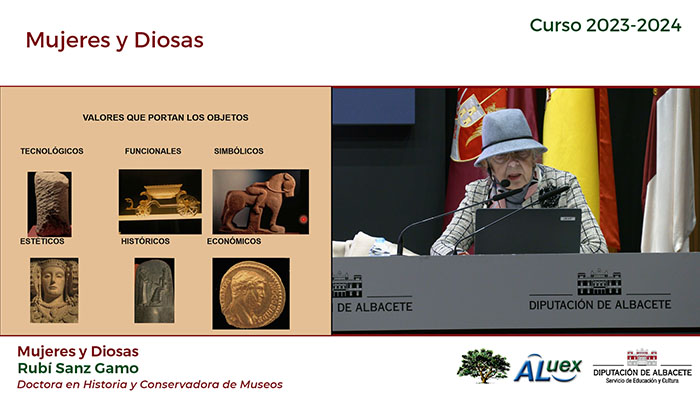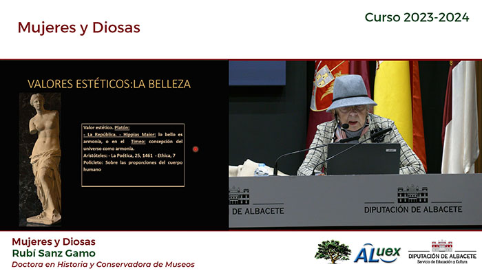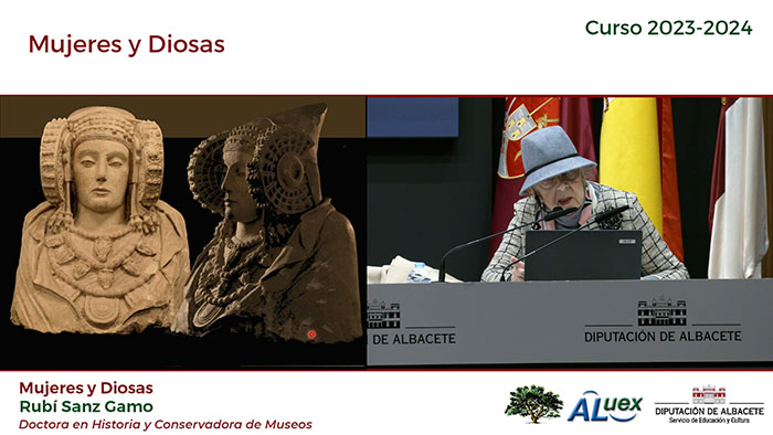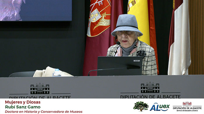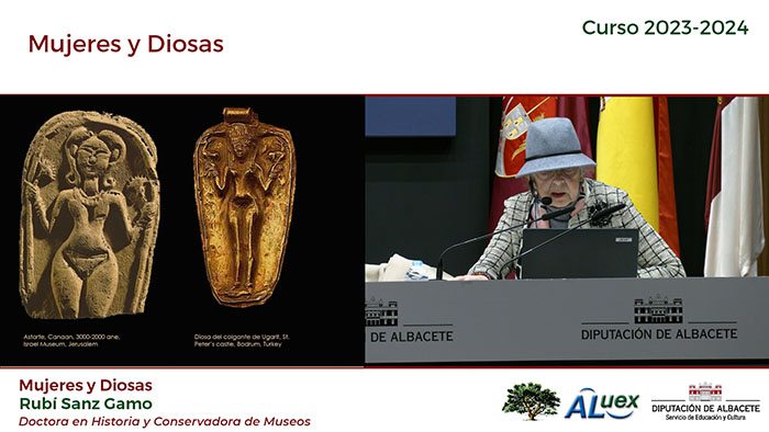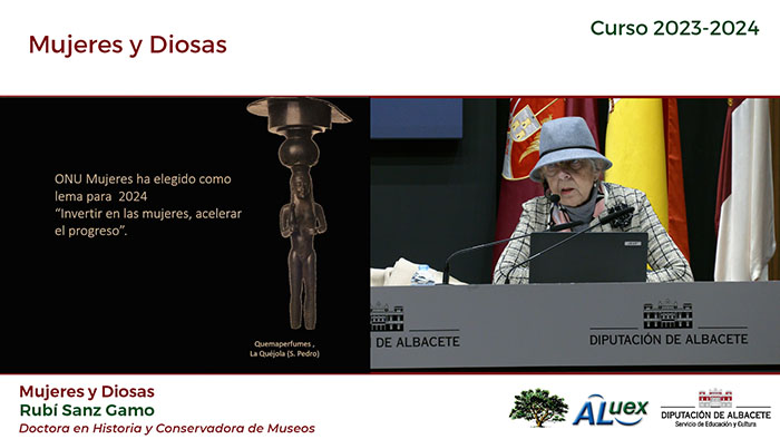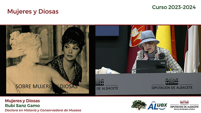 EL PAPEL DE LA MUJER EN LA SOCIEDAD "MUJERES Y DIOSAS". Conferencianta: Rubí Sanz Gamo. Licenciada en Bellas Artes. Fotogramas de la conferencia: Fotografías de la conferencia: (Paco Díaz)