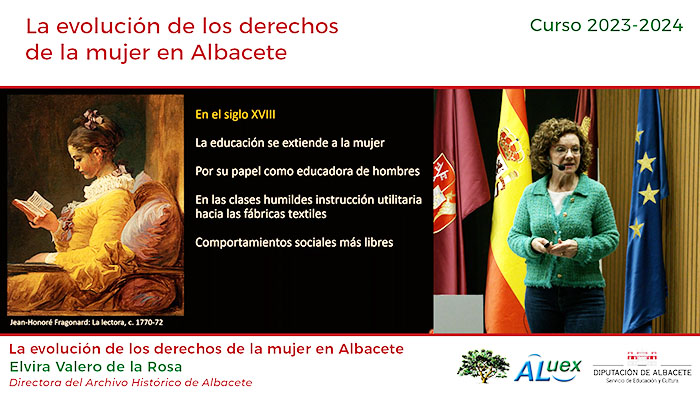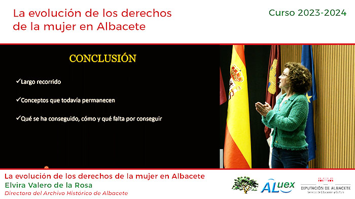 Ponente: Elvira Valero de la Rosa. Directora del Archivo Histórico de Albacete. Fotogramas de la conferencia: