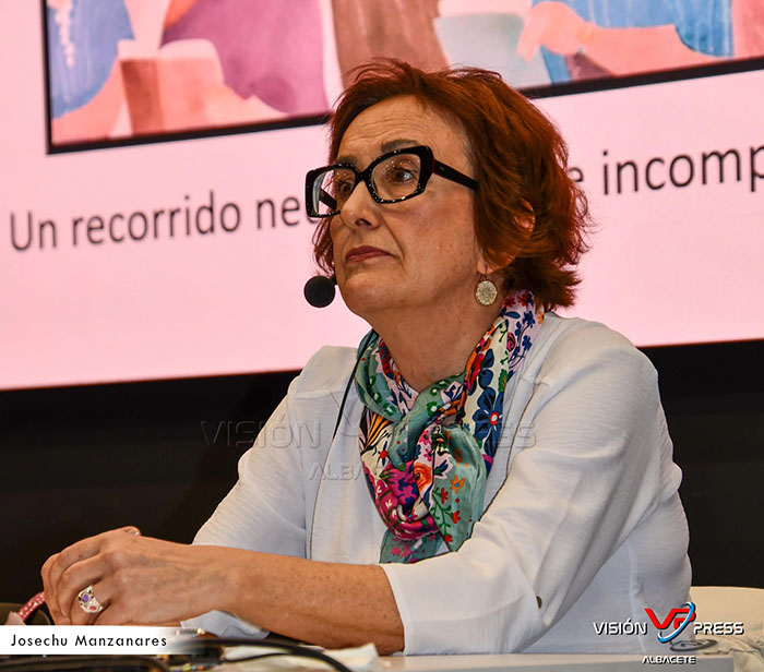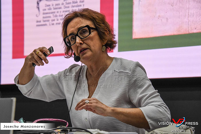 La ponente fue María José Herreros Núñez, filóloga que fue profesora de Secundaria y Bachillerato más de 34 años en centros de nuestra provincia y Murcia. Impartió clases en el Centro de Educación para Personas Adultas ( CEPA) durante un curso. Dictó cursos en la Universidad Popular de Albacete, para adultos, " Literatura : la letra pequeña".