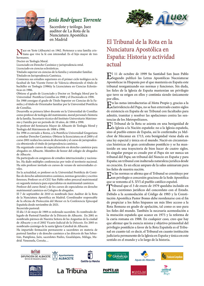 El Tribunal de la Rota en la Nunciatura Apostólica en España: historia y actividad actual. Ponente: Jesús Rodríguez Torrente. Sacerdote y Teólogo. Juez Auditor de la Rota de la Nunciatura Apostólica en Madrid. Boletín de la conferencia