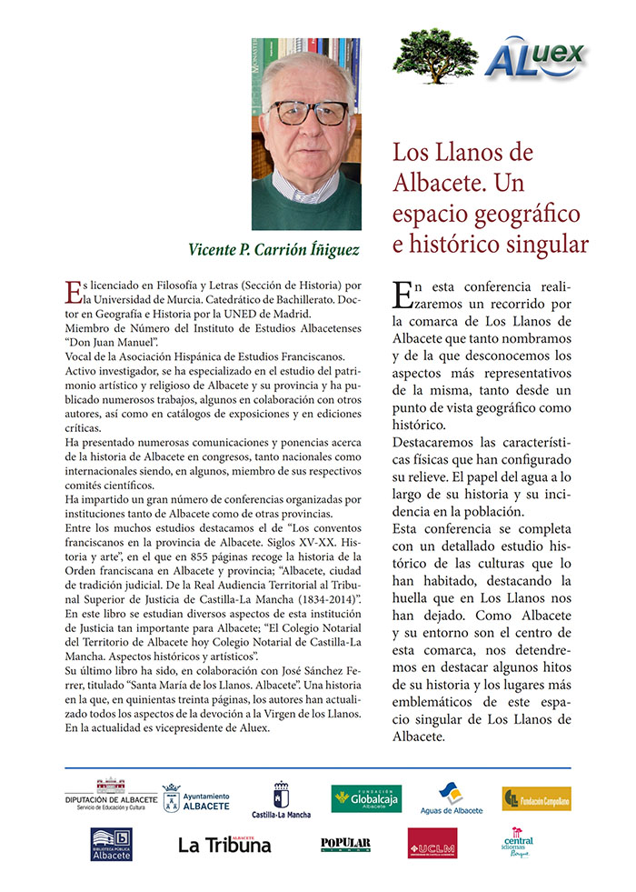 Los Llanos de Albacete. Un espacio geográfico e histórico singular. Ponente: Vicente Pascual Carrión Íñiguez. Doctor en Historia. Boletín de la conferencia