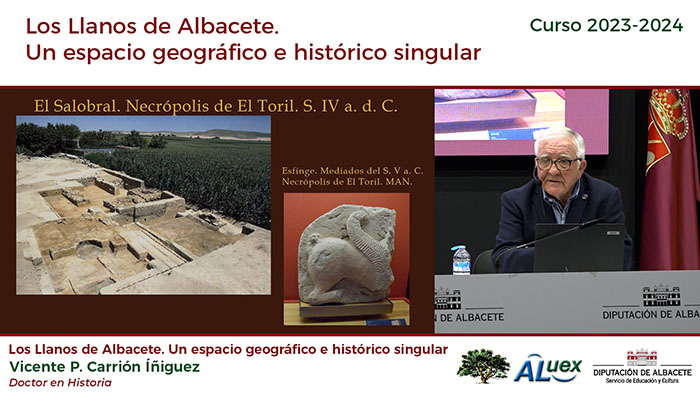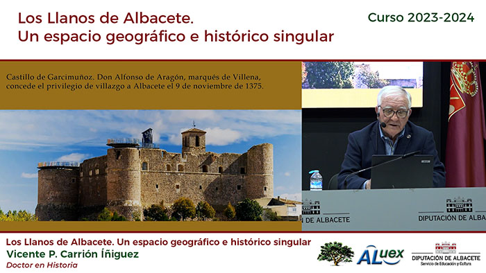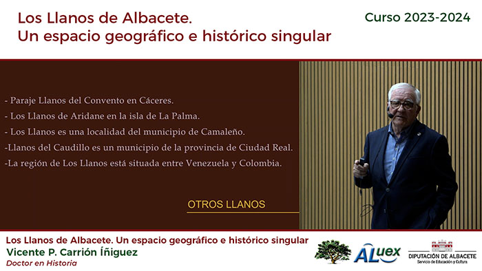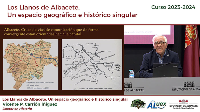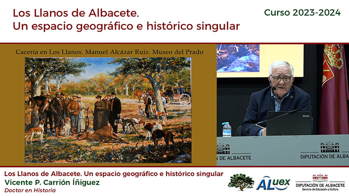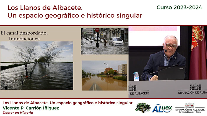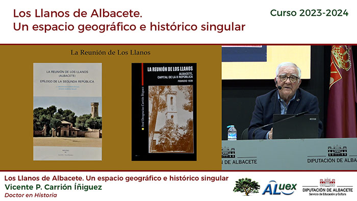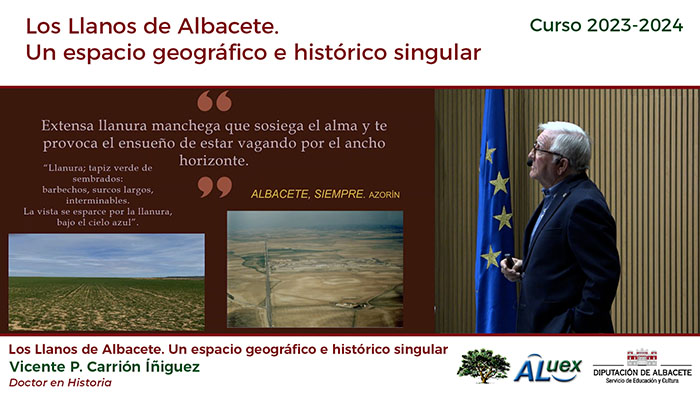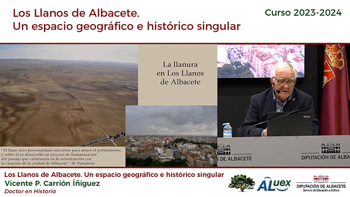 Los Llanos de Albacete. Un espacio geográfico e histórico singular. Ponente: Vicente Pascual Carrión Íñiguez. Doctor en Historia. Fotogramas y fotografías de la conferencia: Fotografías de Paco Díaz: