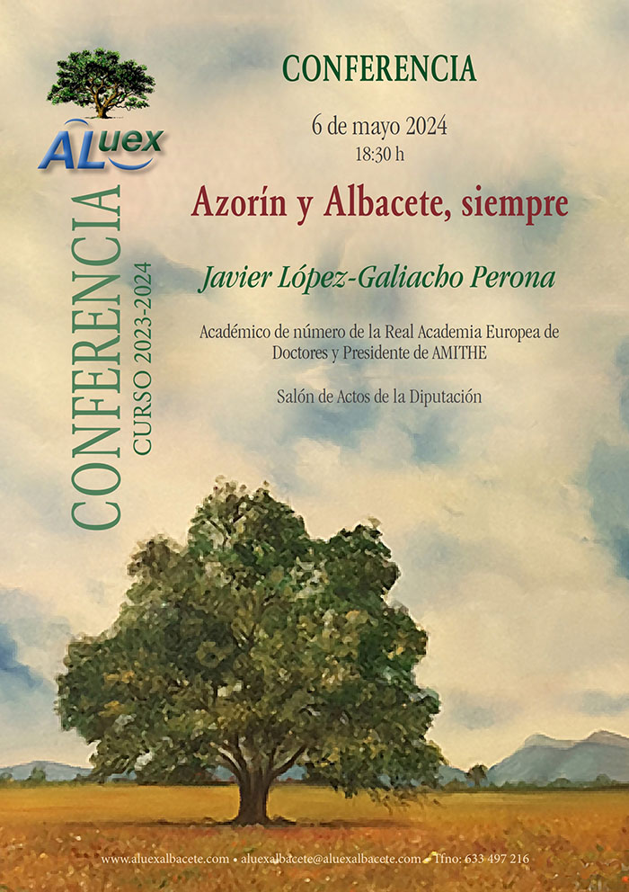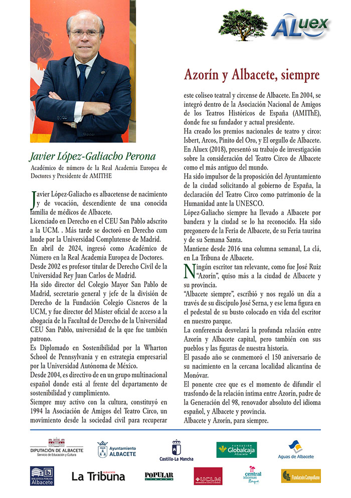 Azorín y Albacete, siempre. Ponente: Javier López Galiacho Perona. Académico de número de la Real Academia Europea de Doctores y Presidente de AMITHE. Boletín de la conferencia