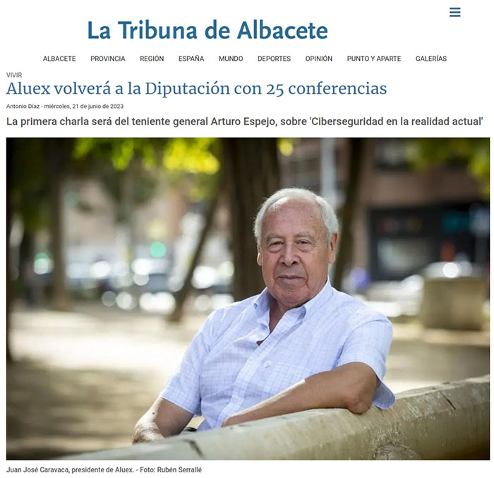 Para este curso, confirmó Juan José Caravaca, en cuanto al programa de conferencias 2023-2024, lo tenemos totalmente cerrado, a falta de algún pequeño detalle. «Lo que es ese ciclo, eje central de Aluex, está al cien por cien, con 25 conferencias, que se iniciarán el día 23 de octubre, con la inaugural, y se cerrará el 13 de mayo, con la última del curso».