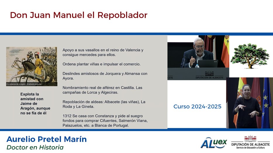 Conferencia número 3. PERSONAJES QUE HAN FORJADO LA HISTORIA DE ALBACETE. DON JUAN MANUEL EL REPOBLADOR. Aurelio Pretel Marín. Doctor en Historia. .