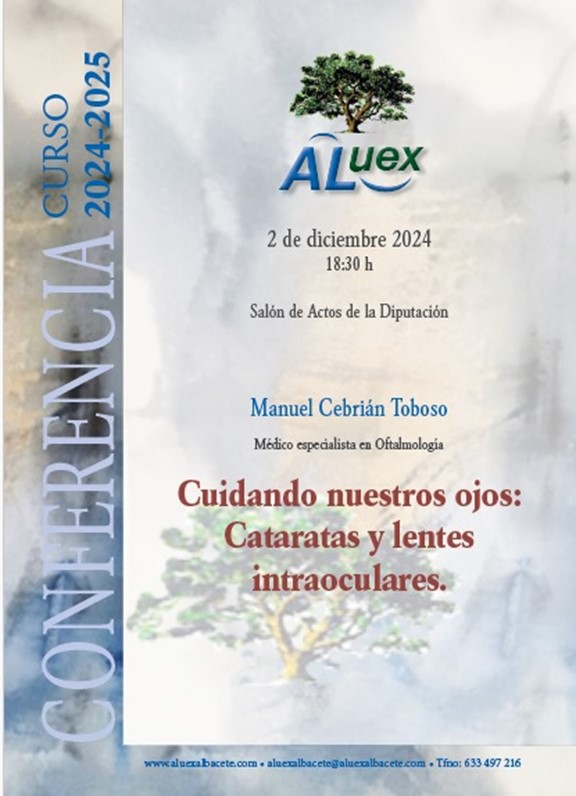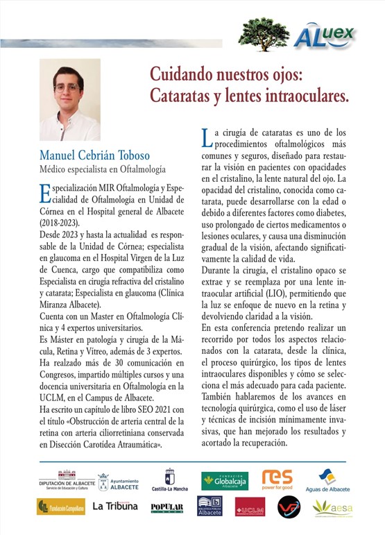 Conferencia número 7. LA MEDICINA AL SERVICIO DE LA SALUD CUIDANDO NUESTROS OJOS: CATARATAS Y LENTES INTRAOCULARES. Manuel Cebrián Toboso. Oftalmólogo.