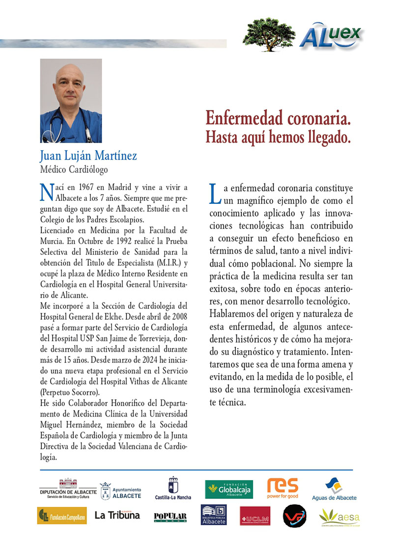 Conferencia número 9. LA MEDICINA AL SERVICIO DE LA SALUD ENEFERMEDAD CORONARIA. HASTA AQUÍ HEMOS LLEGADO. Juan Luján Martínez. Médico Cardiólogo. Boletín de la conferencia: