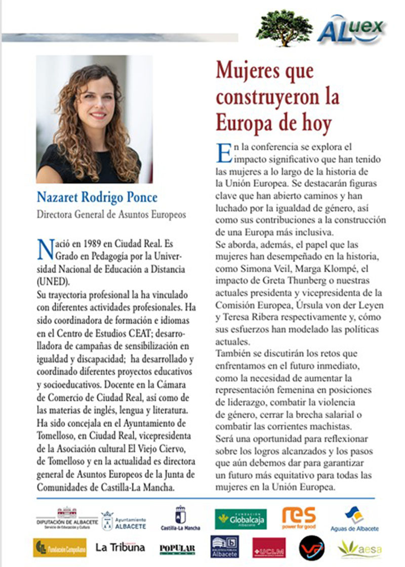 Conferencia número 18. MUJERES DE AYER Y HOY: MUJERES QUE CONSTRUYERON LA EUROPA DE HOY. Nazaret Rodrigo Ponce. Directora General de Asuntos Europeos.