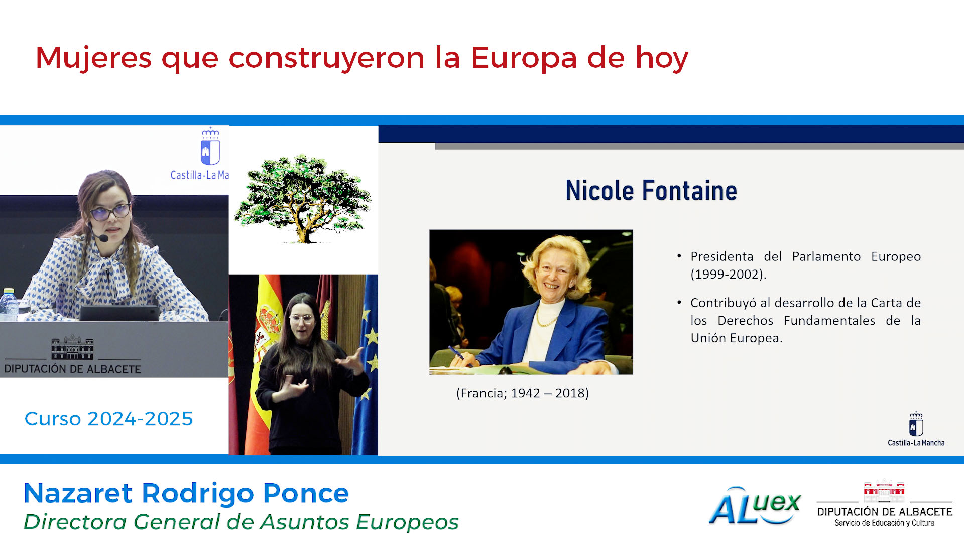 Conferencia nĂºmero 18. MUJERES DE AYER Y HOY: MUJERES QUE CONSTRUYERON LA EUROPA DE HOY. Nazaret Rodrigo Ponce. Directora General de Asuntos Europeos.