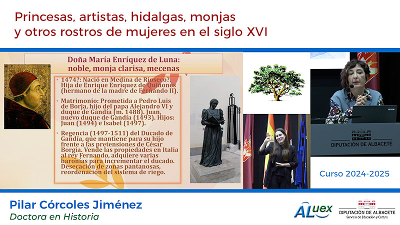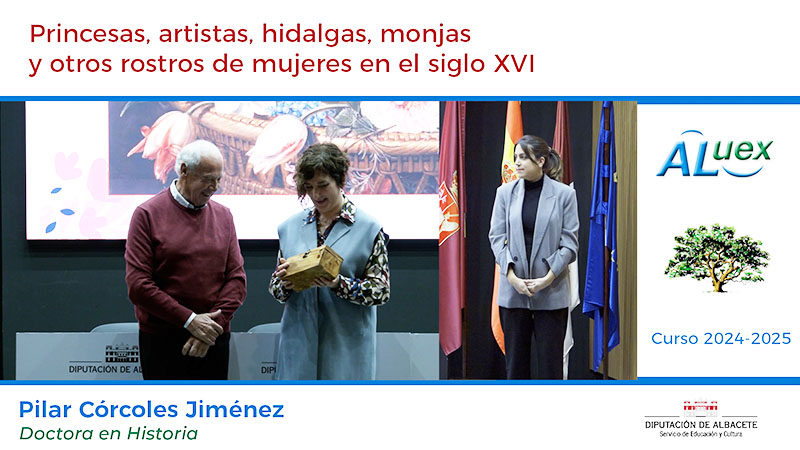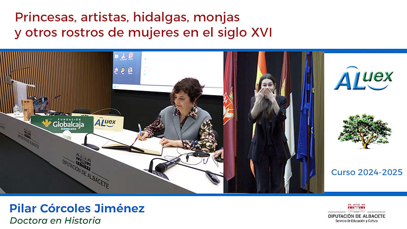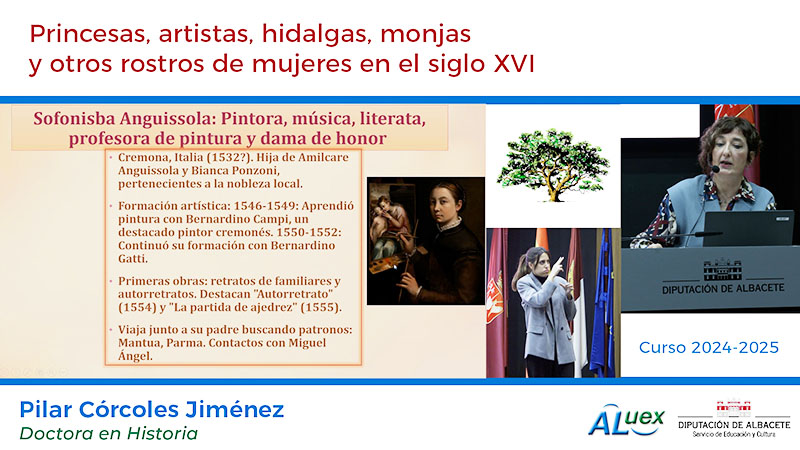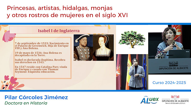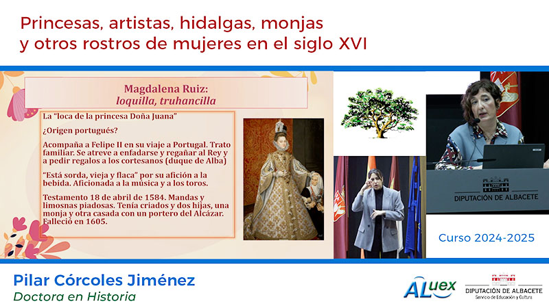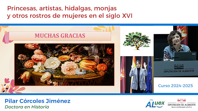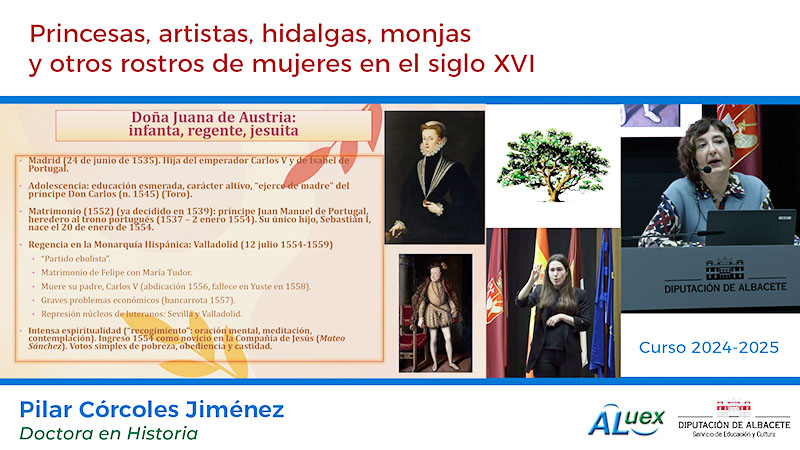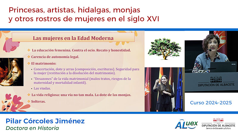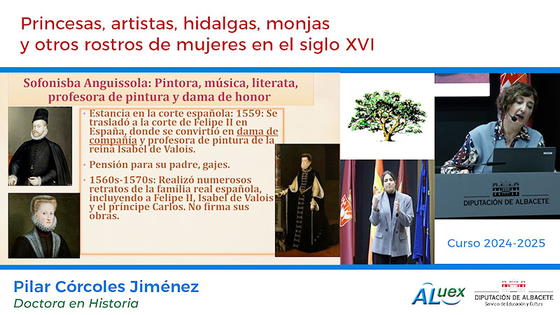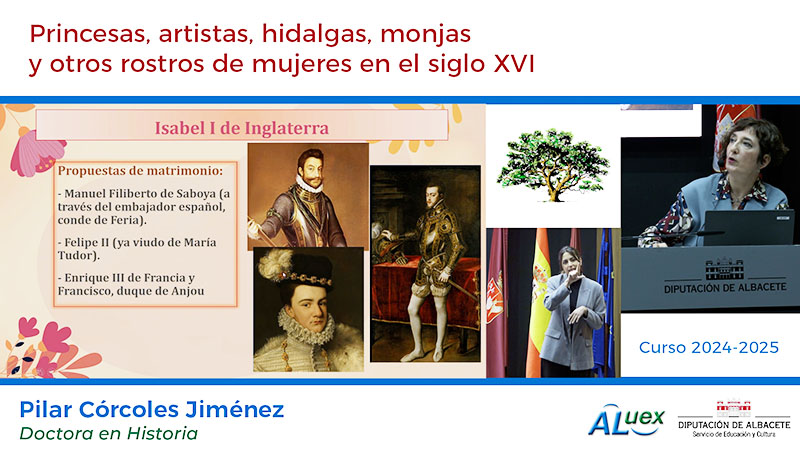 PRINCESAS, ARTISTAS, HIDALGAS, MONJAS Y OTROS ROSTROS DE MUJERES EN EL SIGLO XVI . Pilar Córcoles Jiménez. Doctora en Historia Fotogramas de la conferencia editados por Carmela Sainz de Baranda: