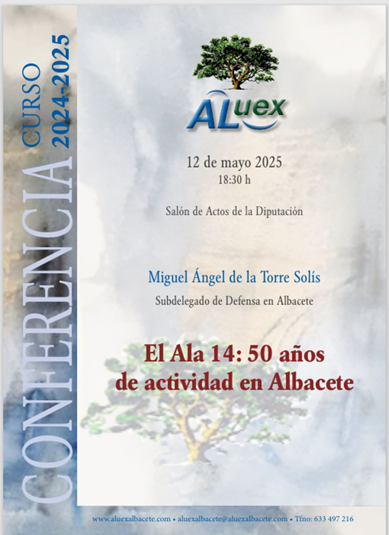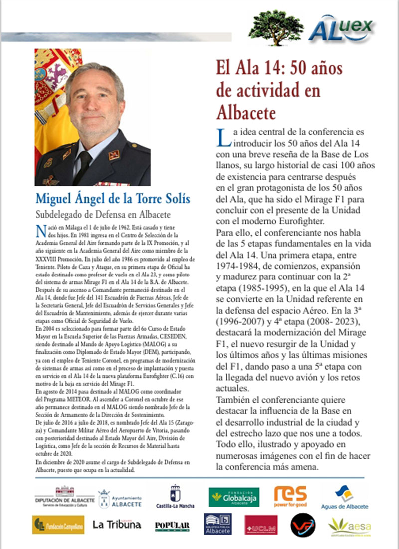 EL ALA 14: 50 AÑOS DE ACTIVIDAD EN ALBACETE. Miguel Ángel de la Torre Solís. Coronel del Ejército del Aire y Subdelegado de Defensa en Albacete. Boletín de la conferencia: