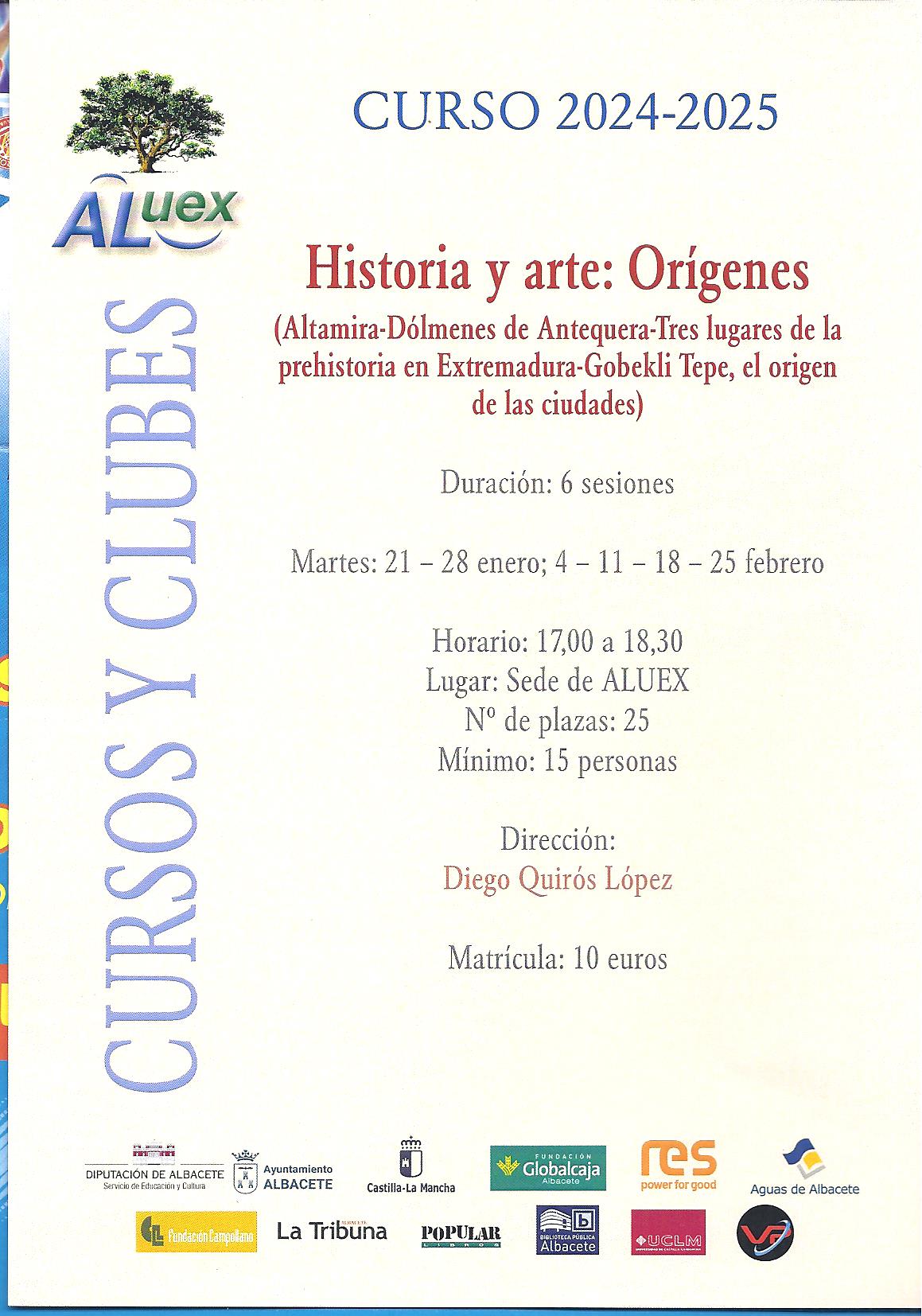 A lo largo de seis martes y tras 9 horas de clase presencial se conocerá algo de la historia de Altamira, los Dólmenes de Antequera, tres lugares de la prehistoria en Extremadura y de Gobekli Tepe, el origen de las ciudades.