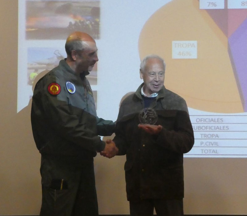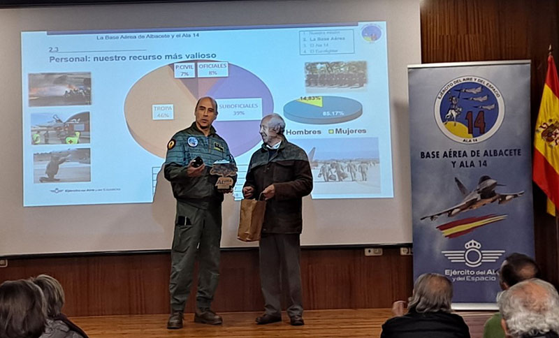 Y mención especial merece el coronel del Ala 14, D. Diego Sánchez Caamaño. Nos recibió con los brazos abiertos, nos acompañó desde el primer momento y a lo largo de todo la visita y nos dio una conferencia magistral sobre el papel que las Fuerzas Aéreas del Ejército del Aire han desempeñado y siguen desempeñando en beneficio de la paz, en las misiones de solidaridad, y con su presencia en todos aquellos lugares del mundo donde se requiere de su atención.