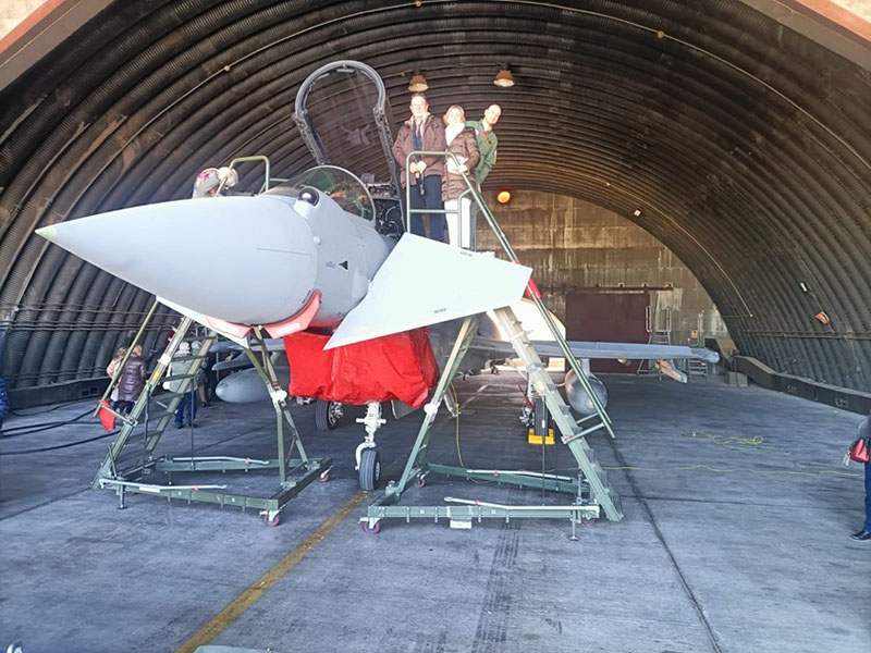 Un punto y aparte en su alocución fue el tiempo dedicado a darnos a conocer la Base Aérea y el Ala 14, su trayectoria de 50 años en la Base de Albacete deteniéndose, especial y particularmente, en presentarnos su más moderna herramienta de trabajo, el avión de caza Eurofigther Typhoon, al que poco después tuvimos la suerte de conocer “personalmente” descansando plácidamente en su hangar.