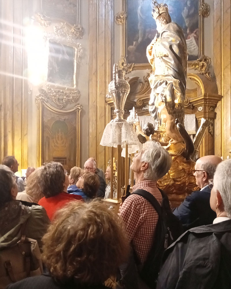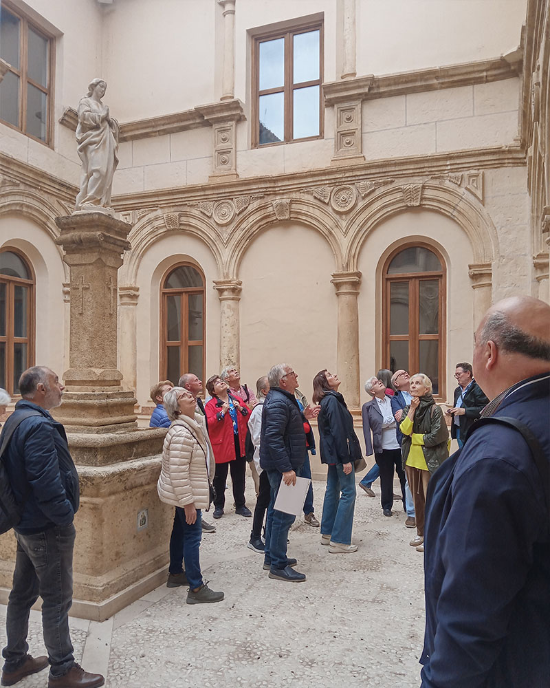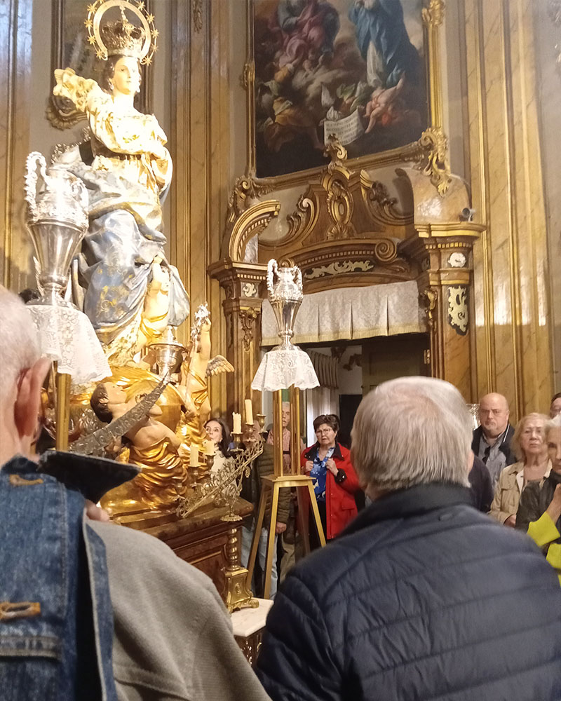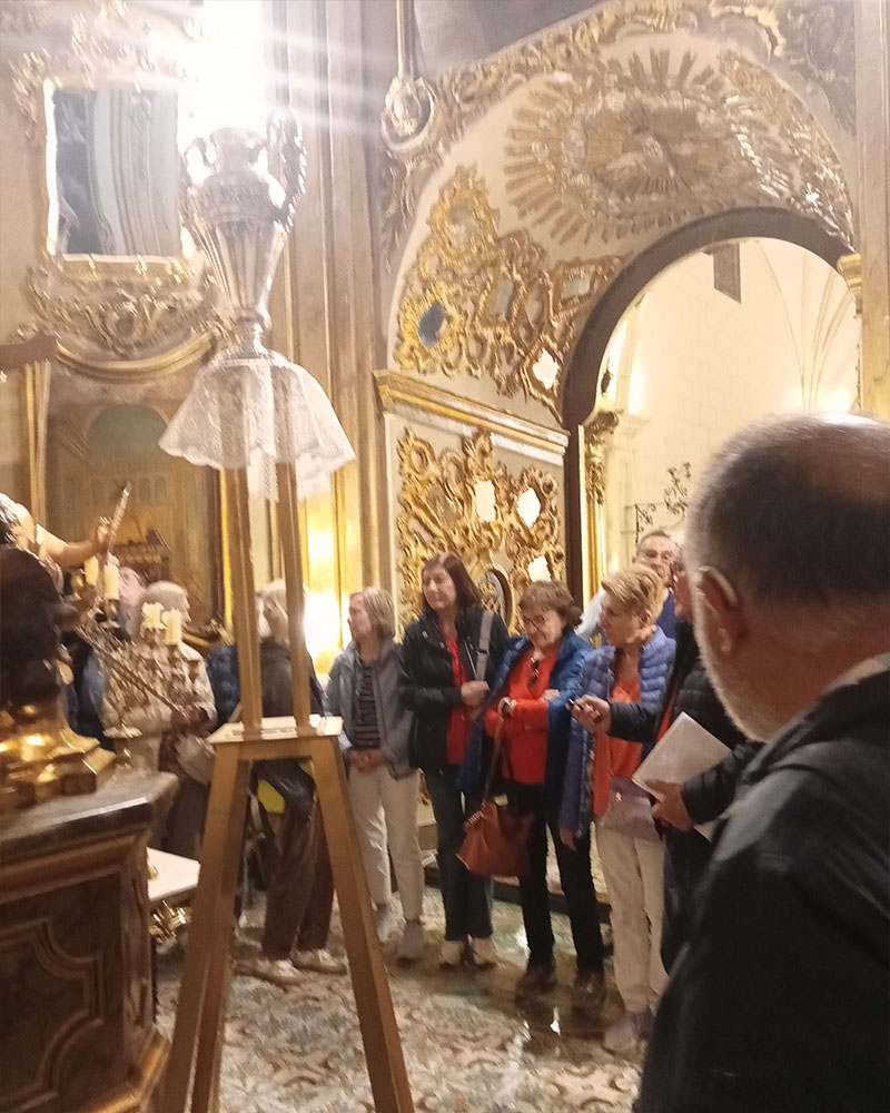 Con la experta y amplia información de Vicente Pascual Carrión Íñiguez, autor del libro “Los conventos franciscanos en la provincia de Albacete”, nos quedamos bien empapados de la historia de este convento, de la iglesia y sus capillas, del área claustral y, sobre todo, del camarín de la Virgen, de estilo rococó, ubicado tras el retablo del altar mayor, en el que se destaca su amplitud y su gran riqueza decorativa a base de yeserías doradas.