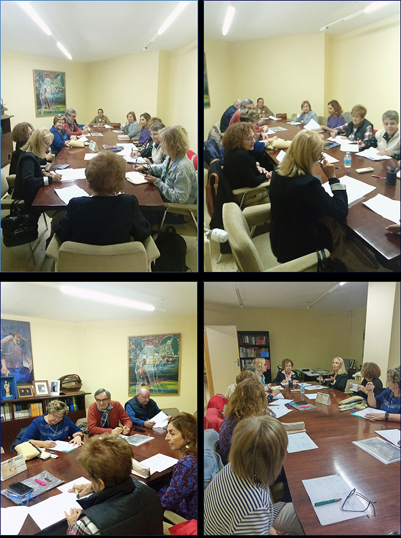 En estas cuatro imágenes se contemplan los momentos de la reunión y deliberaciones de los miembros del Jurado de la Experiencia en la que se decidió la Mención Especial al mejor corto al que se le concedió el premio ALUEX.