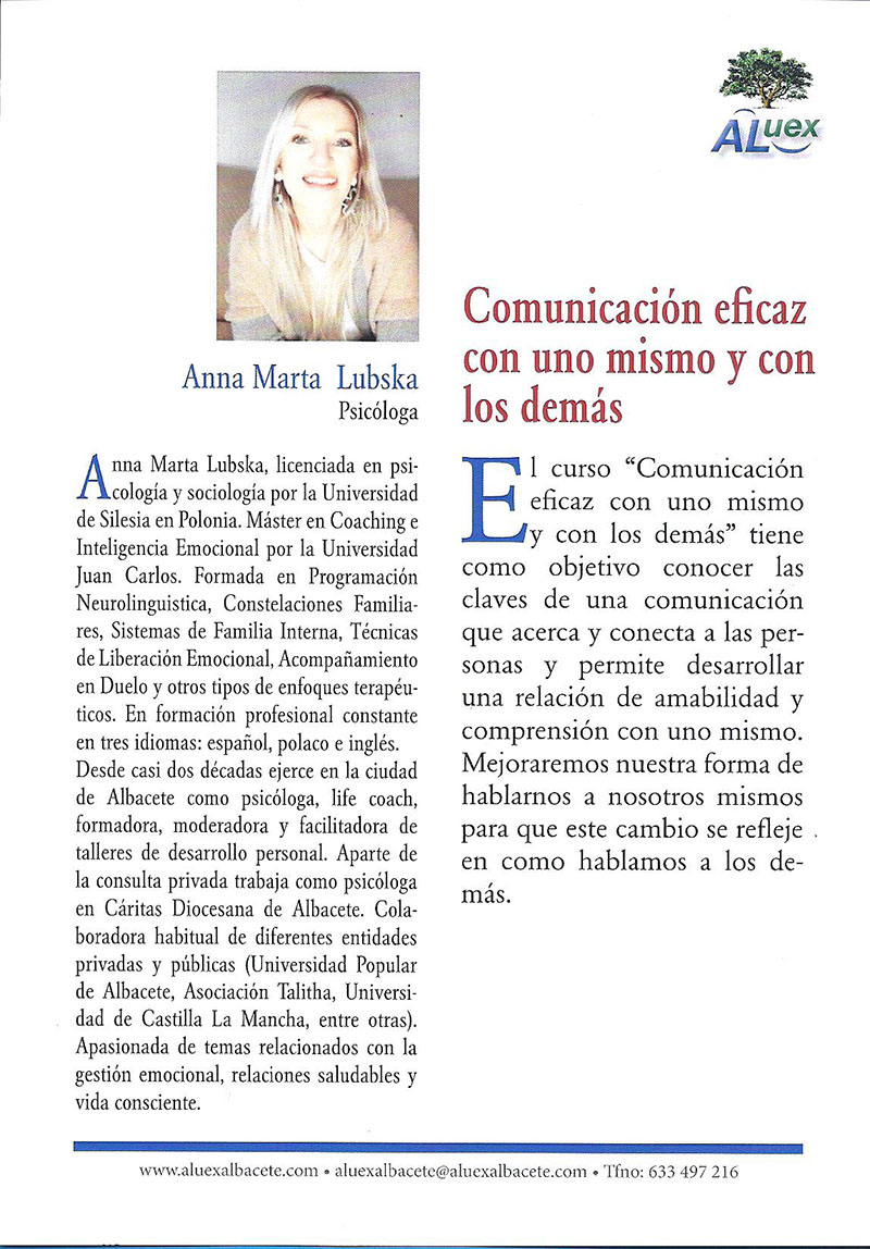 Bajo el título "Comunicación eficaz con uno mismo y con los demás" tiene como objetivo conocer las claves de una comunicación que acerca y conecta a las personas y permite desarrollar una relación de amabilidad y comprensión con uno mismo. Mejoraremos nuestra forma de hablarnos a nosotros mismos para que este cambio se refleje en como hablamos a los demás.