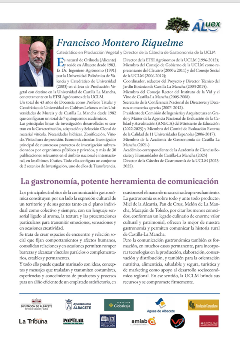 LA GASTRONOMÍA POTENTE HERRAMIENTA DE COMUNICACIÓN. Francisco Montero Riquelme, Catedrático en producción vegetal y Director de la Cátedra de Gastronomía en la UCLM.