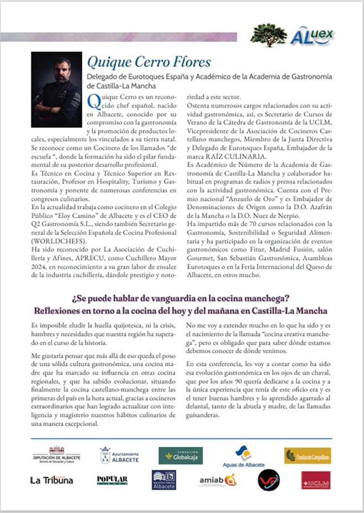 Reflexiones en torno a la cocina de hoy y del mañana en Castilla la Mancha. Quique Cerro Flores. Delegado de Erotoques España y Académico de la Academia de Gastronomía de Castilla La Mancha.