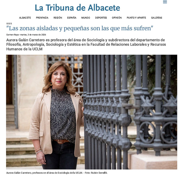 2 de marzo 2026. Conferencia número 17. Entrevista en el periódico La Tribuna de Albacete: ¿Desde qué perspectiva enfoca la ponencia? La conferencia se basa en varias investigaciones que se han realizado a lo largo de varios años y de entrevistas con muchas mujeres de las zonas rurales. Actualmente, también contamos con una investigación sobre mujeres al final de la cadena de valores en la industria agroalimentaria, también en Castilla-La Mancha, en tres sectores específicos como son champiñón, vino y quesos. Realizamos también análisis desde un punto de vista de la perspectiva de género, partiendo también de conceptos como el de la organización social total del trabajo. Después nos centramos en la evolución en el mundo rural, en el mundo agrario y su correspondencia en el mundo agroalimentario, desde los años ochenta hasta la actualidad. Cuáles son las principales dificultades a las que se enfrentan actualmente las mujeres que trabajan en la industria agroalimentaria? Son varias, en realidad. Pero la principal se centra en las cuestiones de la burocracia. Ahí hay un tema que es importante porque hay veces que las condiciones, y sobre todo los requisitos que se establecen, son complicados. También a la hora de realizar gestiones para la creación de empresas o para solicitar ayudas a la empresa. Es muy importante el trabajo de los técnicos en los territorios rurales, tanto de agentes de empleo como los centros de la mujer y demás, o los centros de desarrollo rural, porque son los que están apoyando fundamentalmente a estas mujeres. ¿Otros problemas? Las infraestructuras, los problemas de comunicación y la digitalización. ¿Cuál es la clave para atraer y retener a las mujeres en la industria agroalimentaria? Tener recursos para sus hijos a nivel educativo, a nivel de salud, a nivel de las infraestructuras básicas y de la conexión a Internet. Pero como digo, las zonas aisladas y pequeñas son las que más sufren. ¿En qué momento está el sector y cuáles serían los retos a futuro? Aún estamos trabajando en ello y no hay una varita mágica con la que solucionarlo todo. El gran reto es que la gente pueda elegir dónde vivir de manera saludable y trabajar de forma sostenible, sin diferenciar entre territorio rural y territorio urbano. Lo primero que hay que hacer es crear espacios de conectividad y conseguir que la gente tenga una vida plena.