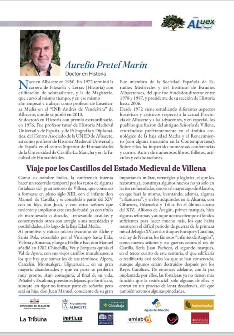 Conferencia número 21. VIAJE POR LOS CASTILLOS DEL ESTADO MEDIEVAL DE VILLENA. Aurelio Pretel Marín.. Doctora en Historia.