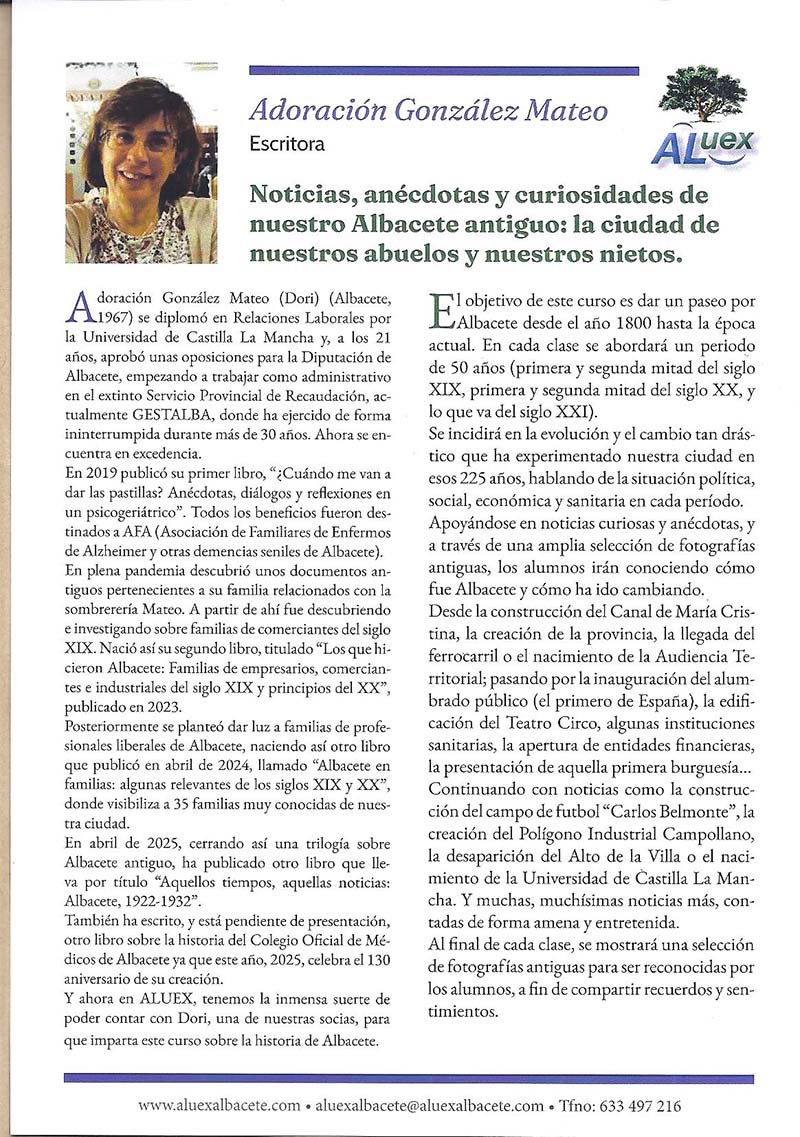 Comienza el curso : Noticias,anécdotas y curiosidades de nuestro Albacete antiguo: la ciudad de nuestros abuelos y nuestros nietos. Dirigido por Adoración González Mateo.