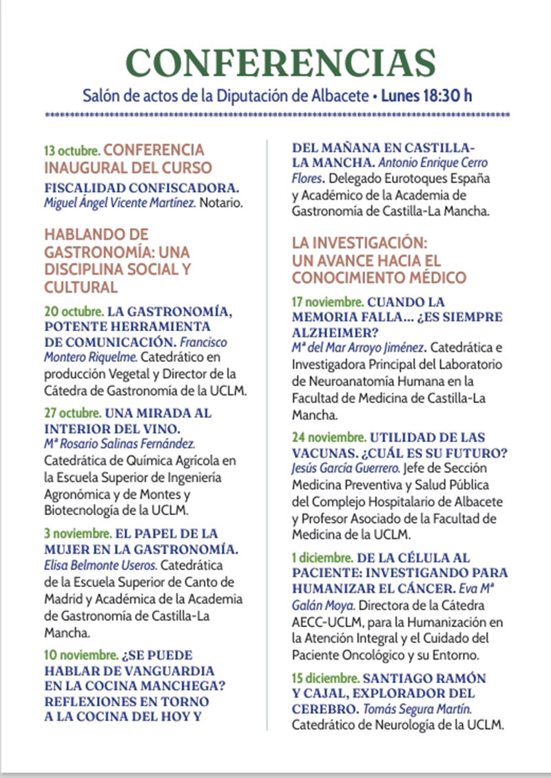 | CICLO DE CONFERENCIAS CURSO 2025 - 2026 Salón de actos de la Diputación de Albacete Lunes 18,30 h (Las conferencias son abiertas) |