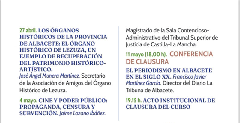 11 mayo (18,00 h). EL PERIODISMO EN ALBACETE EN EL SIGLO XX. |