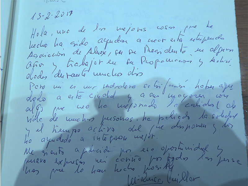 LIBRO DE HONOR María Luisa Cuellar García Reyes. Dia 13 de febrero 2017. La presidenta de la asociación Aluex durante los años 2006-2007, nos firmó en el libro de honor, aprovechando que estaba presente en la conferencia que se dio ese día en el Salón de Actos de la Diputación Prrovincial; |