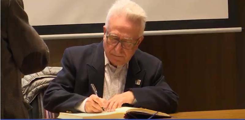 Firmo en nuestro Libro de honor con motivo de su Conferencia número 17 del curso 2018-2019 “LOS LIBROS DEL BIBLIOFILO”. Celebrada en el Salón de Actos de la Diputación Albacete el día 4 de marzo 2019