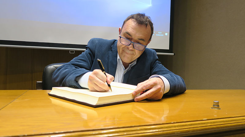 LIBRO DE HONOR Don Juan Luís López Galiacho.Periodista.Licenciado en Ciencias Económicas. Doctor en Ciencias de la Información. Día 1 de abril 2019. Firmó en nuestro Libro de honor con motivo de su Conferencia: