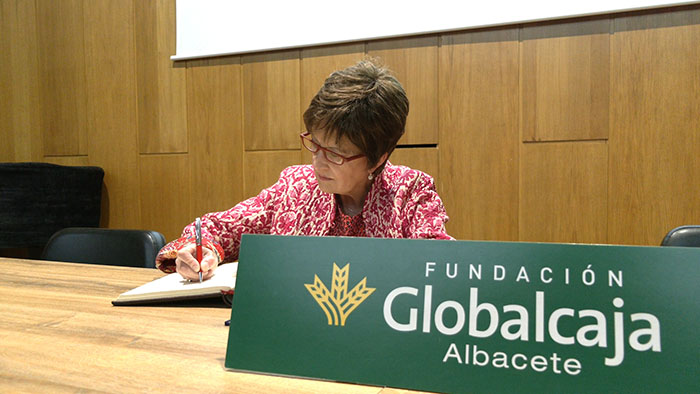 Firmó nuestro Libro de Honor con motivo de su conferencia RETRATO DE ZENOBIA CAMPRUBÍ. . 20ª Conferencia:dentro del ciclo ALUEX PROYECTO DE FUTURO en su apartado EL ARTE SIEMPRE.