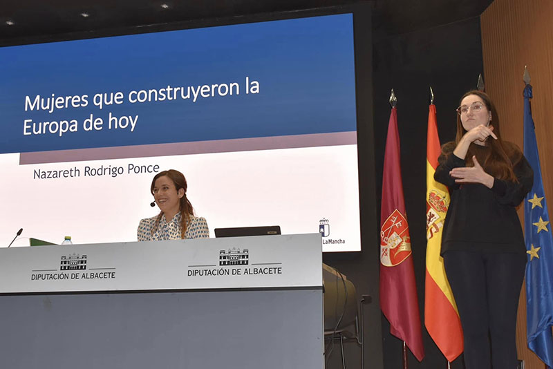 Dentro del apartado MUJERES DE AYER Y HOY: Conferencia número 18 del curso 2024-2025, celebrda en el Salón de Actos de la Diputación de Albacete.