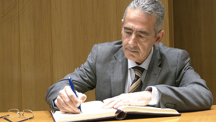 | Día 7 de marzo 2022.. Don Ramón Bello Serrano. Firmó nuestro Libro de Honor el día 7 de marzo 2022 con motivo de su conferencia número 17 del curso 2021-2022, celebrada en el Salón de Actos de la Diputación Provincial, con el título: "BALZAC, LA EBRIEDAD DEL CAFÉ (TIPOS, GRANOS Y MEZCLAS EN LA COMEDIA HUMANA). |