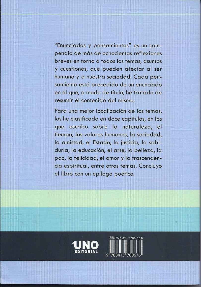 Enunciados y pensamientos Este es el último libro escrito por nuestro compañero de ALUEX Isidoro Ballesteros Ruiz ( socio número 651), publicado el pasado año 2015, que se encuentra a la venta en las principales librerías de Albacete. También se puede consultar en la Biblioteca pública. |